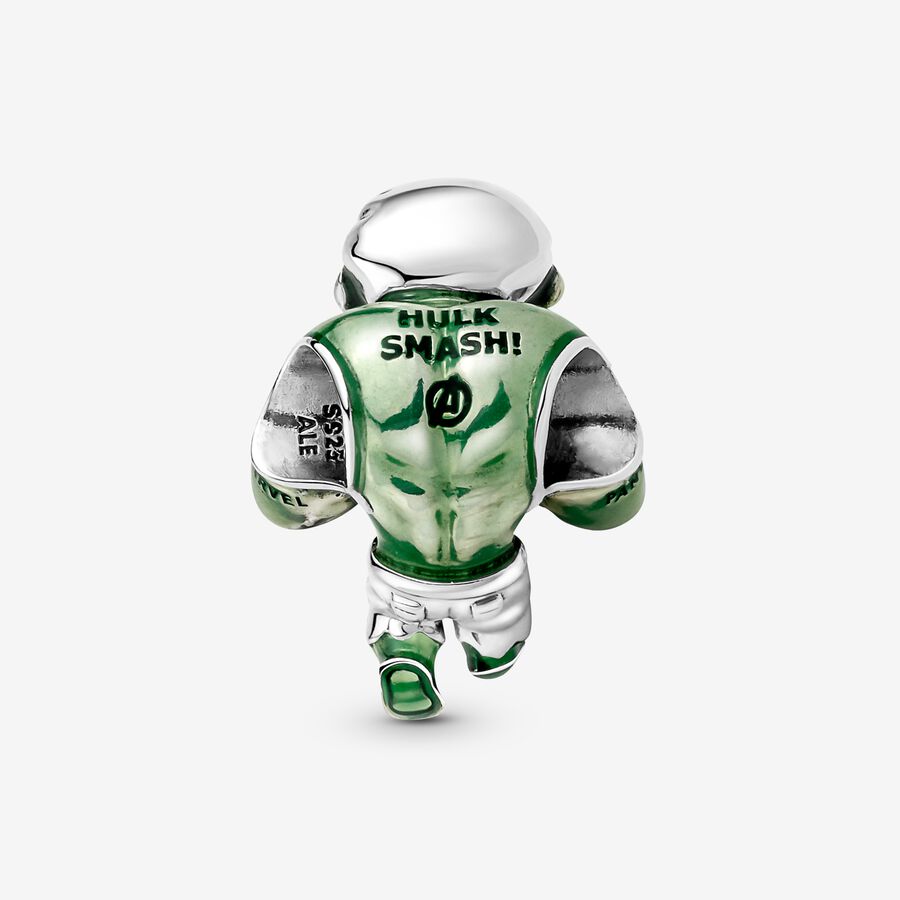 I am Hulk. Unleash the big guy with our Marvel The Avengers Hulk Charm and share your love for the Marvel Cinematic Universe with the world. Hand-finished in sterling silver and painted with transparent green enamel, Hulk is captured in his characteristic pose and engraved with his trademark slogan, “HULK SMASH!” A symbol of the many sides that exist in all of us, add this charm along with your other favorite heroes to our Pandora Moments Marvel The Avengers Logo Clasp Snake Chain Bracelet.