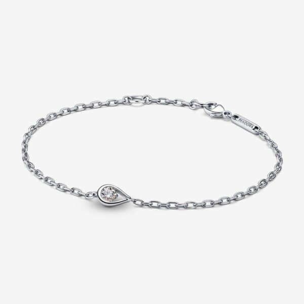 A new take on modern elegance in sterling silver, our lab-created diamond chain bracelet showcases a 0.15 carat lab-created diamond, hand-set within a modern infinity motif that symbolizes infinite joy, optimism and strength. The simplicity of a fine sterling silver chain complements the radiance of the lab-created diamond centerpiece, creating a meaningful statement that shines as brightly as you. Two jump rings make the chain easily adjustable for the perfect fit.