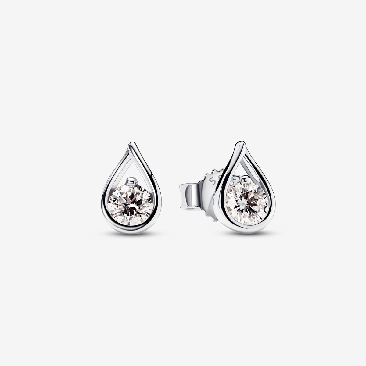 “A pair of solid sterling silver stud earrings each hand set with a 0.10 carat lab-created diamond. A sparkling celebration of the infinite potential within all of us, these earrings feature a radiant round brilliant lab-created diamond suspended in our modern infinity setting. “