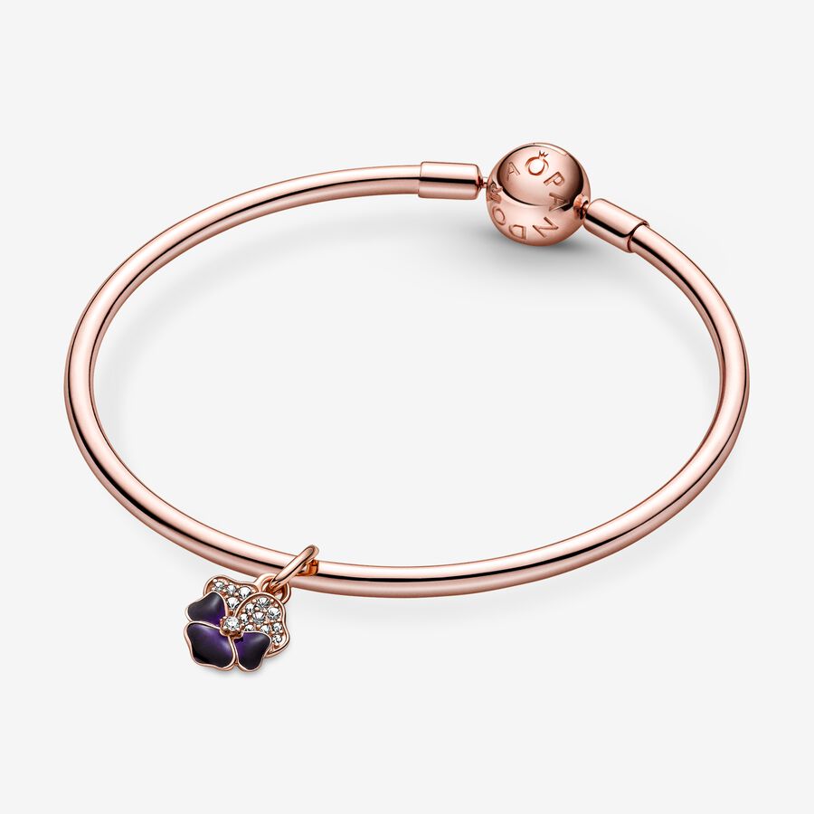 Color your spring with our Deep Purple Pansy Flower Dangle Charm. Set in 14k rose gold plating, our pansy features two petals covered in sparkling pavé and three petals hand-painted in rich enamel, making every flower completely unique. The newest flower to grace our garden, pansies symbolize love in its many forms. Wear yours as a reminder of all the loved ones in your life. Style it with other 14k rose gold pieces or wear it with our Deep Purple Pansy Flower Ring for a coordinated look.