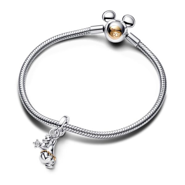 Can you hear a swinging beat? It’s our Disney 100th Anniversary Baloo Dangle Charm! The fun-loving, easy-going sloth bear from Disney’s The Jungle Book, Baloo is the life of the party and a loyal friend. Inspired by a scene from the much-loved film, our sterling silver charm captures Baloo dancing to the beat, wearing a solid 14k gold grass skirt and grasping a sparkling lab-created diamond in one paw. To commemorate 100 years of magic, “Disney 100” is engraved on his back.