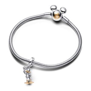 For the ultimate Disney fan – collect our Disney 100th Anniversary Donald Duck Dangle Charm and celebrate one of Disney’s most iconic original characters. Outfitted in his classic sailor shirt, Donald Duck is hand-finished in sterling silver with 14k gold accents on his beak and feet. Striking a jaunty pose, Donald raises his sailor’s cap to reveal a sparkling lab-created diamond. To commemorate 100 years of wonder, “Disney 100” is engraved on his side. Add him to your collection as a light-hearted reminder to look on the bright side and seek laughter every day.
