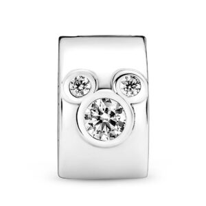 Love Disney’s Mickey and Minnie Mouse? Carry them with you on our Disney Mickey Mouse & Minnie Mouse Clip Charm. Hand-finished in sterling silver, this clip charm is set with brilliant-cut cubic zirconia and will add a day-brightening touch wherever you choose to style it.
