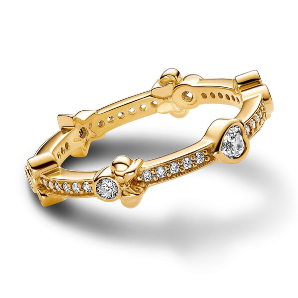 Take your fandom to the next level with the Disney Mickey Mouse & Minnie Mouse Sparkling Eternity Ring. Elegant and delicate, this 14k gold-plated ring features a pavé band punctuated by bezel-set stones arranged in different shapes. One heart-shaped stone and one star-shaped stone are set at an equal distance around the band; in between them are two sets of round stones in a Mickey Mouse head shape and a Minnie Mouse head shape. A perfect sparkling surprise for the Disney lover in your life.