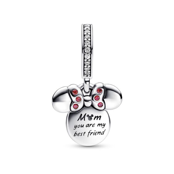 Celebrate a mom who’s your best friend with Disney’s Minnie Mouse. The Disney Minnie Mouse Silhouette Double Dangle Charm features two discs shaped like the iconic Minnie Mouse head silhouette – at the front is an openwork silhouette in 14k rose gold plating set with glittering clear pavé and finished with Minnie’s signature bow with red cubic zirconia stones. Behind it is a sterling silver dangle engraved with the message “Mom you are my best friend” with a cut-out Minnie Mouse silhouette to represent the “o” in Mom, with the other side covered in shimmering white enamel. A sweet surprise for a mum who loves Disney, to thank her for all the laughter, love and special moments you share.