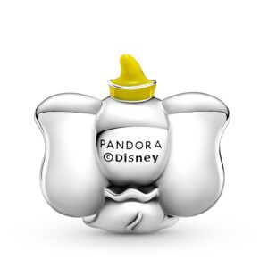 Fly high with the Disney Dumbo Charm. Hand-finished in sterling silver, this charm was designed in collaboration with Disney’s toy designers. Disney’s Dumbo features an enlarged head and smaller body for an adorable finish. The character has big polished ears, engraved toes and black hand-applied enamel eyes. Dumbo’s wearing a ruffled collar and his iconic hat covered in hand-applied yellow enamel with sterling silver detailing. Wear this magical design alongside other Disney x Pandora styles for a fun-filled look.