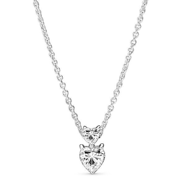 Pandora Double Heart Pendant Sparkling Collier Necklace