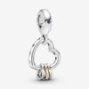A powerful symbol of unbreakable love, the Family Always Encircled Dangle Charm features two entwined 14k rose gold-plated circles, one of which is decorated with clear cubic zirconia pavé. A sterling silver disc dangling from the bail is engraved with the words “ALWAYS TOGETHER.” The harmony of shapes and metal tones in this charm symbolizes how we come together as a family despite our differences.