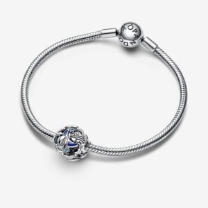 Celebrate the 30th anniversary of ’s with this story-filled charm, crafted from sterling silver. The openwork design showcases the iconic scene of visiting Jasmine on her balcony, silhouetted in front of a glow-in-the-dark enamel moon, which creates a magical effect in darkness. The back of the charm features , with his crossed arms and characteristic grin, surrounded by star-set teal cubic zirconia. Style this story-filled charm on your favorite charm holder to face the world with your favorite characters by your side.