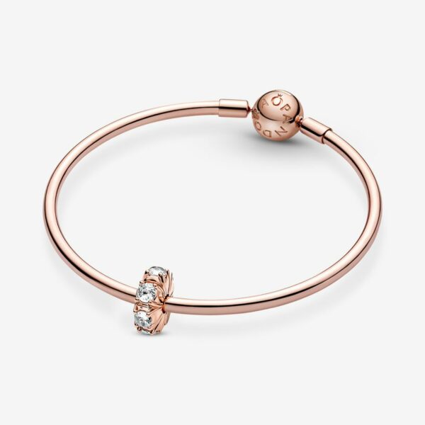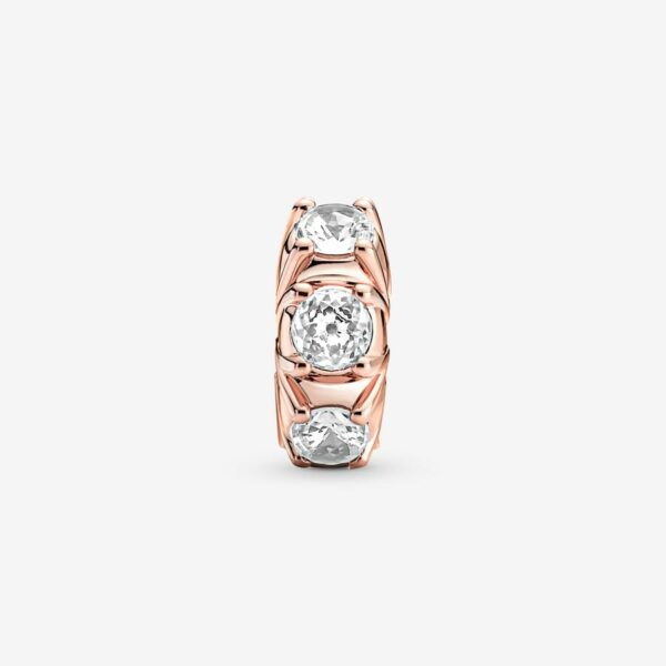 Choose sleek style with the Long Pronged Sparkling Clip Charm. Hand-finished in 14k rose gold-plated unique metal blend, this charm features a line of cubic zirconia stones set with visible prongs that highlight the stones’ sparkle and form an intricate design on the charm’s sides. When clipped onto a snake chain charm holder, the charm will stay in a fixed position thanks to silicone grips. Designed to catch the light, this sparkling charm will elevate any look.