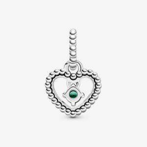 The color of the ocean after a storm or a road trip in Costa Rica? All that you are and all you love, captured in color. Inspired by the beaded designs of Purely Pandora, this heart-shaped dangle is hand-finished in sterling silver and features a claw-set buff top-cut rain forest green man-made crystal in the center. Wear it on Pandora bracelets or necklaces to define and redefine your style by choosing colors that express who you are.