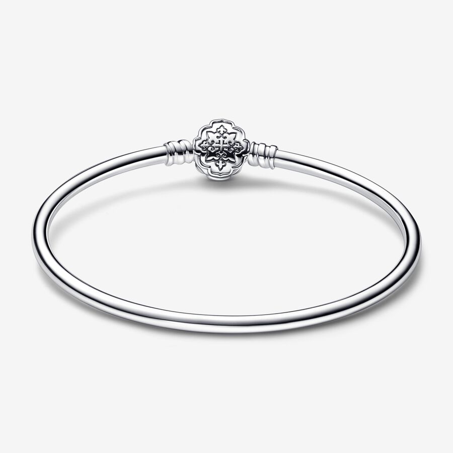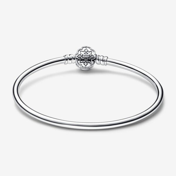 Style your love for ‘s at the center of your story, with this bangle inspired by the classic: . Crafted from sterling silver, the bangle can be styled with your favorite x Pandora charms. The design features an exclusive clasp inspired by the Agrabah kingdom, set with an oval moonlight blue stone, inspired by herself. Complete with the engraving “It’s all so magical”, make your own wishes come true with this meaningful piece, or gift it to an fan to take their jewelry into a new world.