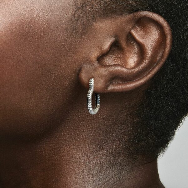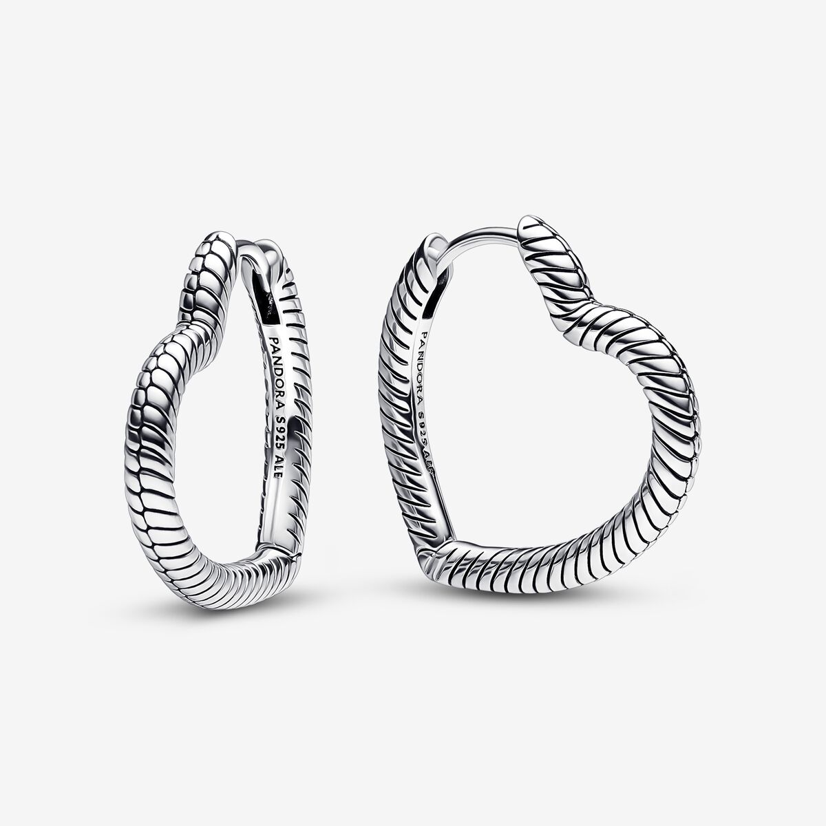 Earrings you’ll fall in love with. Crafted in sterling silver with Pandora’s iconic snake chain pattern, these asymmetric hoops are a reminder that true love is never uniform. Wear these symbols of self-love on their own, or style up to three of your charms, dangles and pendants and tell the world your story.