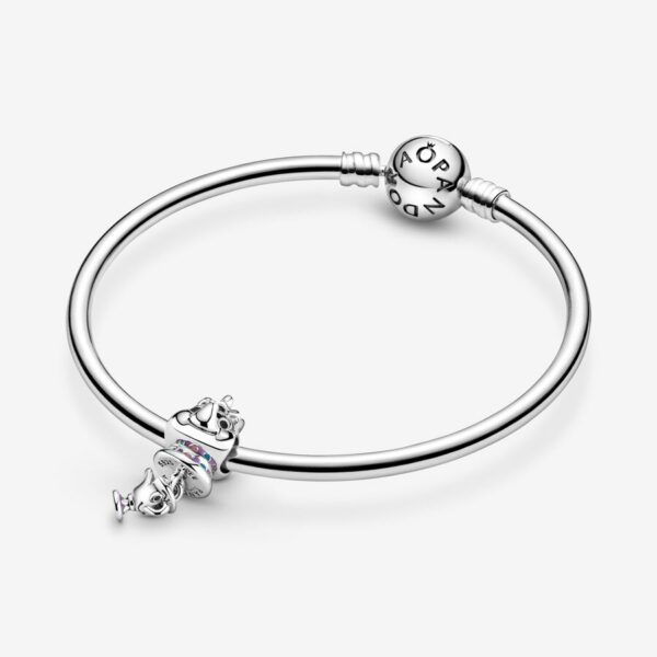 Be our guest and help yourself to this Dangle Charm. Featuring two of the most unforgettable characters from ‘s , this sterling silver Mrs. Potts-shaped charm features an adorable little Chip swinging from the base. Both characters are brought to life with lilac, blue and pink hand-applied enamel details. The sweet charm will add heartwarming cheer to ry look.