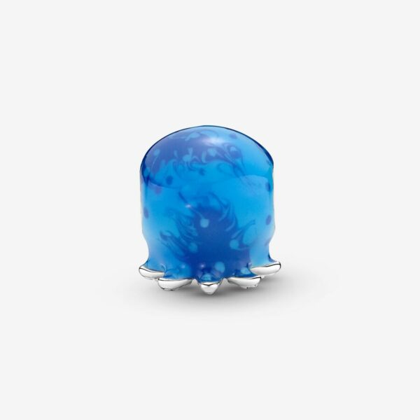 Explore the ocean with this lovable octopus charm, featuring a unique bubble-and-wave enamel effect in shades of blue, hand-applied over sterling silver. Two smooth blue man-made crystals form the kind, clever eyes of the octopus, and its tentacles are decorated on the bottom with raised heart details. Add this charm to your jewelry lineup and dive into a dream of the deep blue sea.