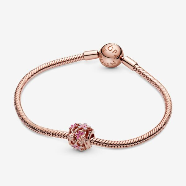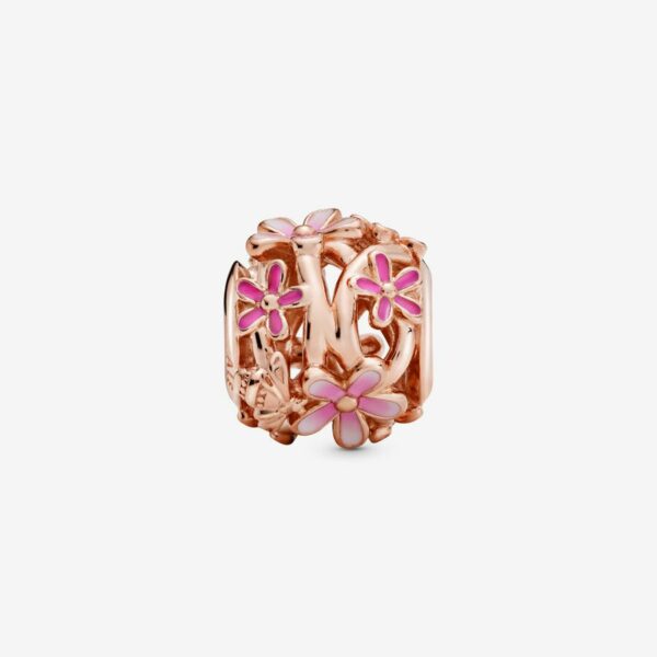 Bring the joy of springtime to your look with this Openwork Pink Daisy Flower Charm. Hand-finished in 14k rose gold plating, this detailed charm features the best of the season including pink daisy flowers, a ladybird and bee details. Be inspired by the symbolic resilience of the daisy flowers and the freedom that they represent. Add to your collection for a pop of colour or gift to someone to brighten their day.