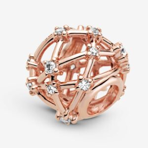 Look to the night sky for answers with the Openwork Star Constellations Charm. Hand-finished in 14k rose gold plating, this piece is inspired by a galaxy-themed design from Pandora’s archive. Clear stones are set along the charm’s rounded openwork lines to mimic the formation of the stars in space. Wear this piece alongside other zodiac-inspired charms on your Pandora Moments bracelet to show that you love the universe.
