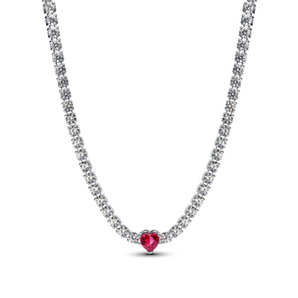 Keep your heart in the right place – at the centre of your look. This sparkling necklace features a cherry red man-made crystal, which hangs in the middle of a sterling silver chain. Finished with a sliding clasp, the necklace can be adjusted to suit your style. Wear it high on the collarbone as a colourful statement, or lower on the chest as part of a sparkling stack.