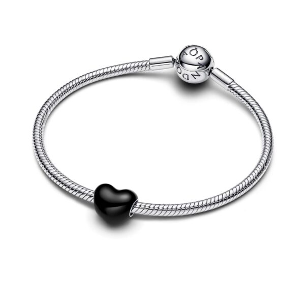 Bring a touch of mystery to your look with our Black Heart Charm. It’s decorated in black enamel that allows a flash of sterling silver to shine through. Inspired by the power of colour, this charm lends elegance and restraint to any collection.