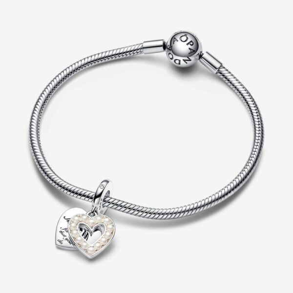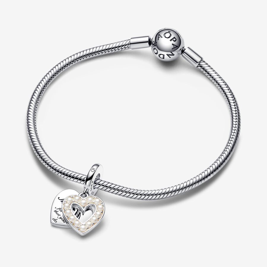 Pearlescent White Heart Double Dangle Charm
