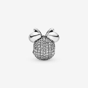 Not only a mouse, but also a fashionista, makes her mark on this glittering sterling silver charm. Her signature bow dazzles in cubic zirconia, lending a pop of pink to your styling, and her radiant smile is sure to light up any look. Add the style icon to a Pandora Moments bracelet for a sweet and sentimental touch or gift it to someone you know will love it. This clip charm features no silicone grip, so it will slide if not styled onto threads (two raised charm dividers).