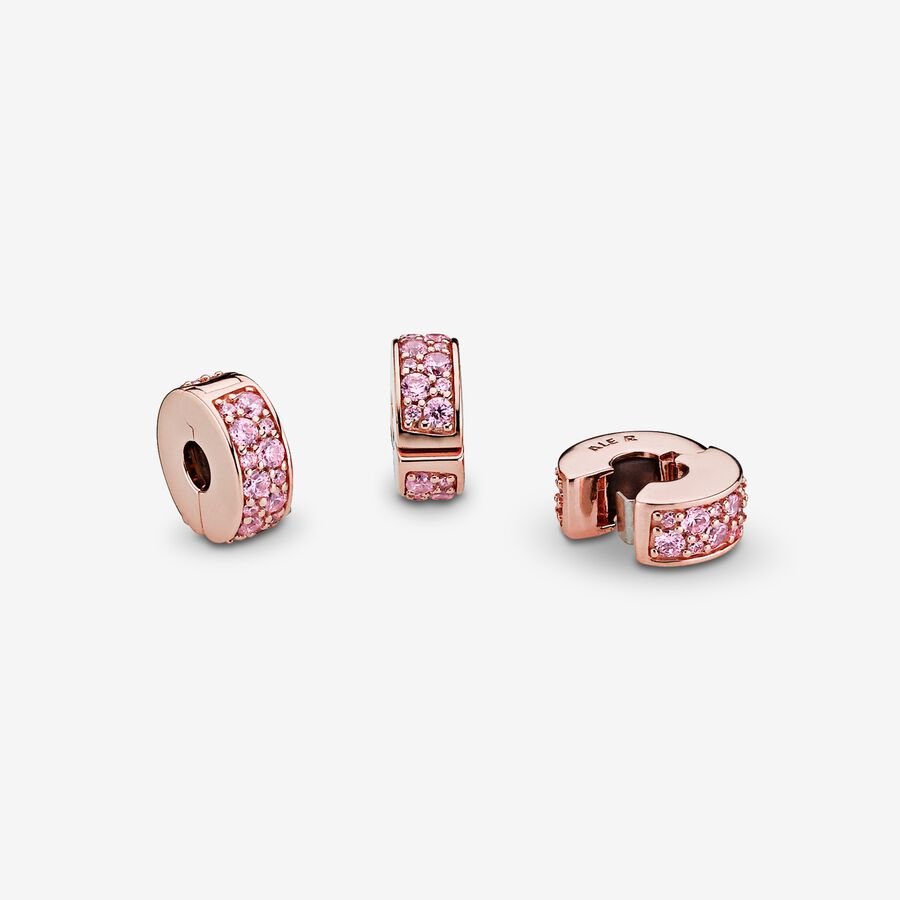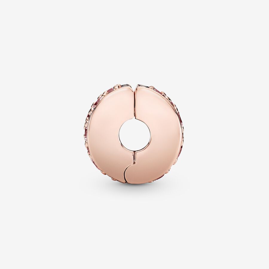 You don’t have to shout to make a strong statement. Our 14k rose gold-plated Pink Pavé Clip Charm adds a powerful touch to your bracelet, bringing both balance and beauty. Hand-finished in 14k rose gold plating, it’s pavé-set with pink cubic zirconia that lend sparkle to your look. Clip multiple charms onto your bracelet to create a symmetrical styling, or add a single piece for a minimalist look. Your mood sets the tone. This clip charm features a silicone grip, does not fit onto threads (two raised charm dividers.) This charm can be styled anywhere else on the bracelet.