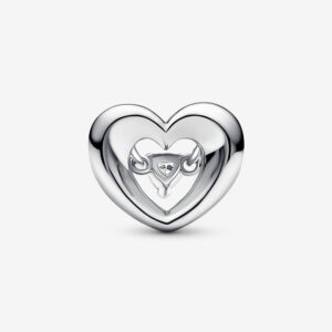 What the heart wants. Inspired by the joining of two hands to form a heart gesture, our Radiant Heart & Floating Stone Charm makes a sweet statement about the power of love. Hand-finished in sterling silver, a 3D open heart reveals a dangling heart-shaped faceted cubic zirconia within, sparkling as it catches the light. Gift it to the one who completes you.