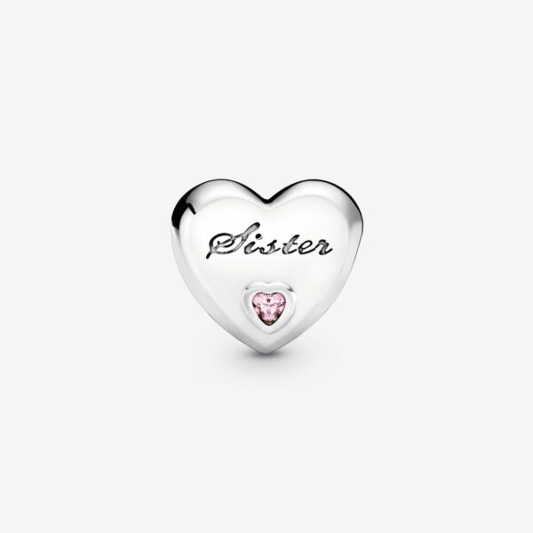 Pandora Moments charms are made for you to express the things you love – something, somewhere or someone. Made to celebrate the bond between siblings, our sterling silver family charm is shaped as a heart. Polished to a high shine, the simple yet meaningful style is trimmed with heart-shaped pink stones and the engraving “Sister.” We think it makes a meaningful gift to show the story you share.