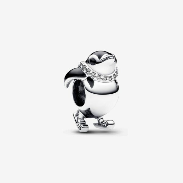 Whisk yourself away to a winter wonderland with our Skiing Penguin Charm. This sterling silver charm features a lovable penguin in a skiing pose, as if it’s swishing through the snow. The penguin is brought to life with black enamel on its body, wings and eyes, and a cosy scarf embellished with sparkling pavé. The perfect gift to rekindle nostalgic memories of fun days in the snow.