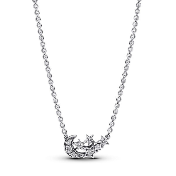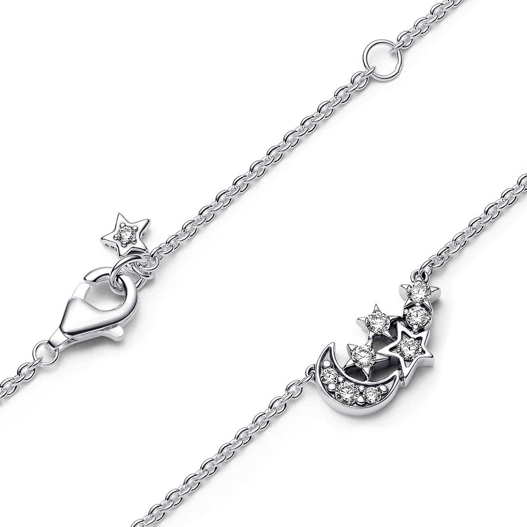 Shine bright with the Sparkling Moon & Star Collier Necklace, featuring celestial motifs of the moon and glittering stars inspired by the magic of a night sky. This cubic zirconia necklace can be adjusted to two lengths for your preferred look. At the closure dangles a five-pointed star set with a clear cubic zirconia. Wear this sterling silver necklace on its own or layer with your favorite chains to bring a touch of sparkle to your everyday.