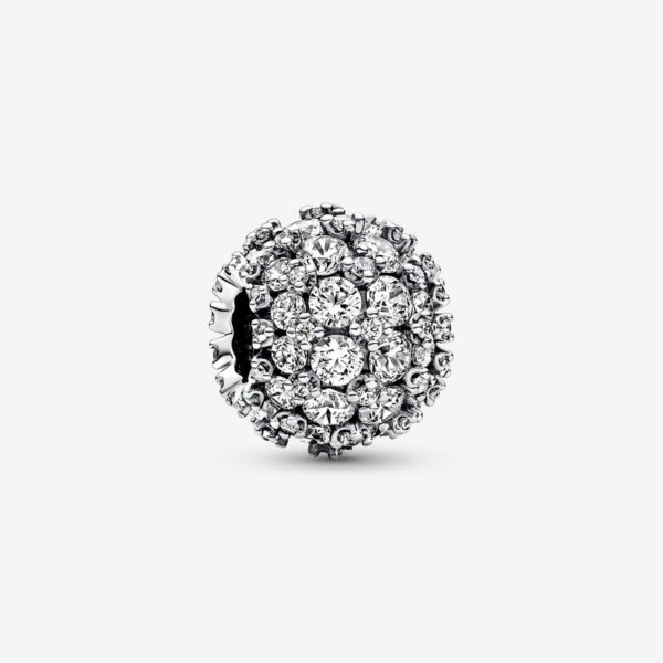 Add a touch of timeless sparkle to your look with the elegant and symbolic Sparkling Pavé Round Charm. This spherical sterling silver charm is set with a total of 88 clear cubic zirconia stones in different sizes, creating a voluminous geometric effect. 88 is a powerful number that represents progress, success and good fortune. It also resembles a double infinity symbol, representing the unlimited possibilities the future holds. Add it to your favorite jewelry styling or gift it to a loved one as a symbol of good things ahead.