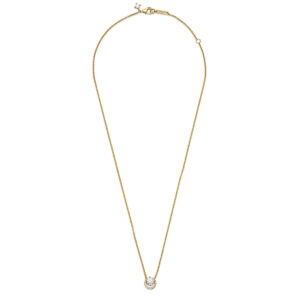 Classic meets contemporary in the 14k gold-plated Sparkling Round Halo Pendant Collier Necklace. The traditional halo setting has been given a fresh update with an off-centered stone setting to create a unique silhouette. The chain length is adjustable, making this a versatile finishing touch to your outfit.