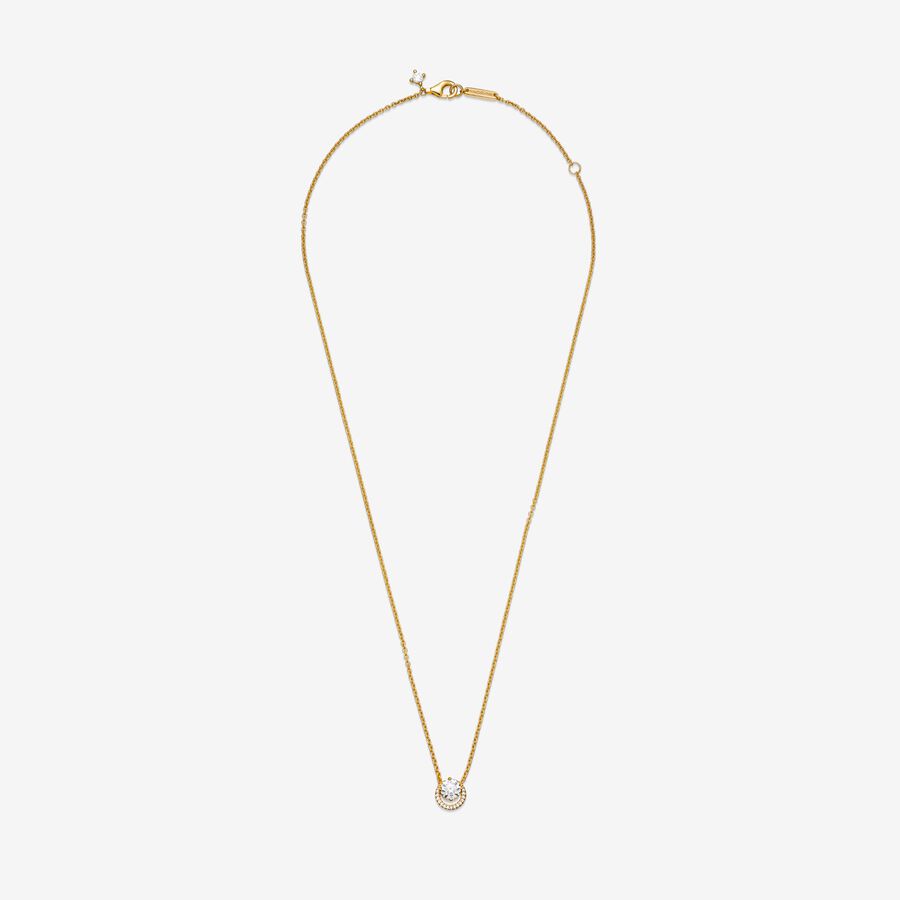 Sparkling Round Halo Pendant Collier Necklace