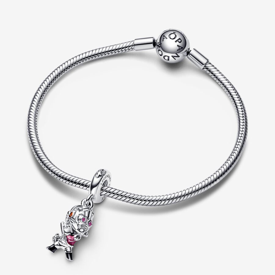 Crafted in sterling silver, Star-Lord is detailed with hand-applied enamel to accentuate his headphones, jacket and boots. Here to save the day, he holds his Quad Blaster and Walkman and wears his iconic helmet set with glowing red stones in the eyes. “STAR-LORD” and “LEGENDARY OUTLAW” are engraved on either side of the bail, which is also imprinted with the Guardians of the Galaxy emblem on its front. Add Star-Lord to your Marvel x Pandora collection to bring the action into your style.