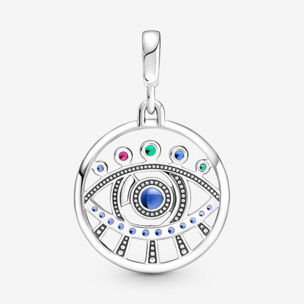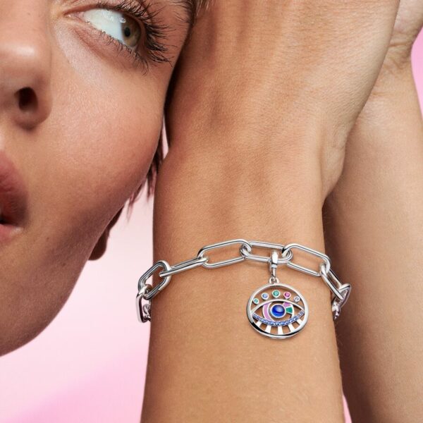 Make sure all eyes are on you with the ME The Eye Medallion. Hand-finished in Silver plated, our meaningful medallion features an eye motif that evokes looking deep beneath the surface at inner beauty. Featuring hand-applied magenta and green enamel, this significant amulet is set with red, blue and green brilliant-cut crystals, for a vibrant statement you can mix and match across your link chains. With a simple click-to-close bail, style yours on your ME closed styling links and openable styling connectors across link chain bracelets, necklaces and hoops. Please note this item is only compatible with ME jewelry and will not fit our other collections.Discover how to mix and re-mix your ME look here.