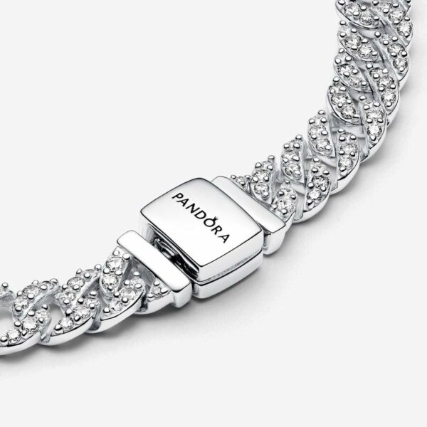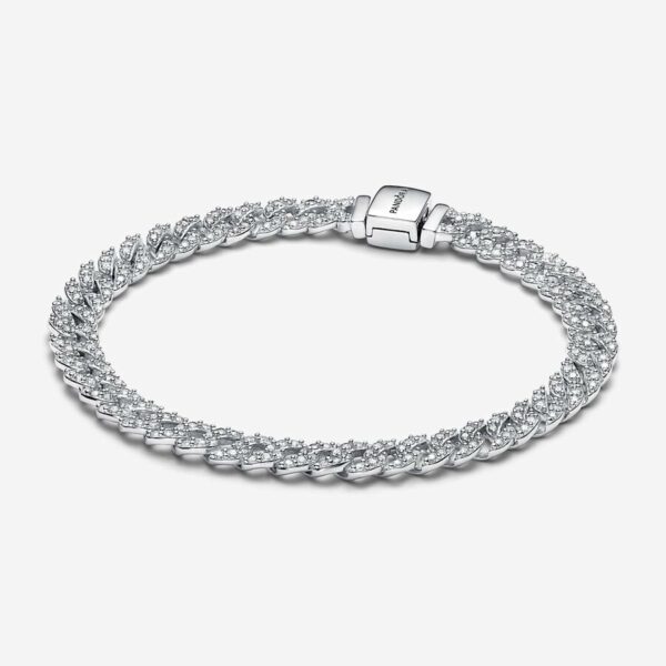 Elevate your look with the Timeless Pavé Chain Bracelet. This sterling silver bracelet features sparkling links in a chain. The top of each half circle is set with three round stones, while the back of the chain is polished for shine and comfort. The bracelet closes with a flat, square-shaped clasp featuring an engraved logo. Combining the linear geometry of our iconic chains with sparkling pavé, this sterling silver chain bracelet is a forever piece with of-the-moment appeal.StoneCubic ZirconiaColourClearProduct TypeBraceletsItem593008C01MetalSterling silverMaterialNo Other MaterialDimensionsDepth:2.8 mmHeight:6 mm